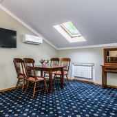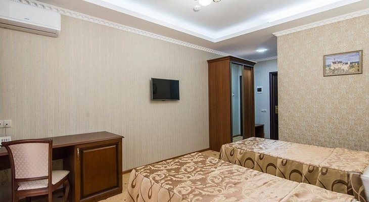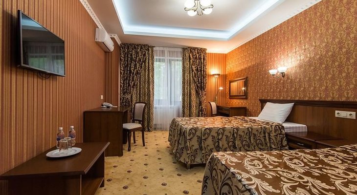 Стандартные номера оформлены в бежевых тонах и обставлены удобной мебелью. Интересные дизайнерские решения каждого из них создают все условия для первоклассного отдыха. В летнее время работает сплит-система, зимой – включают отопление.
