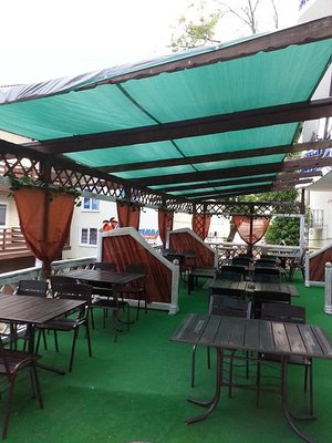 Гостиница располагает своим кафе. Здесь предлагается несколько типов питания с выбором первых, вторых блюд и закусок. В баре широкий ассортимент напитков.
