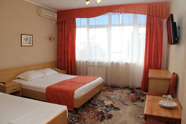 Вас ожидают яркие и уютные номера гостиницы, каждый из которых оснащен кондиционером, холодильником, телевизором со спутниковыми каналами, кроватью, индивидуальной ванной комнатой.
