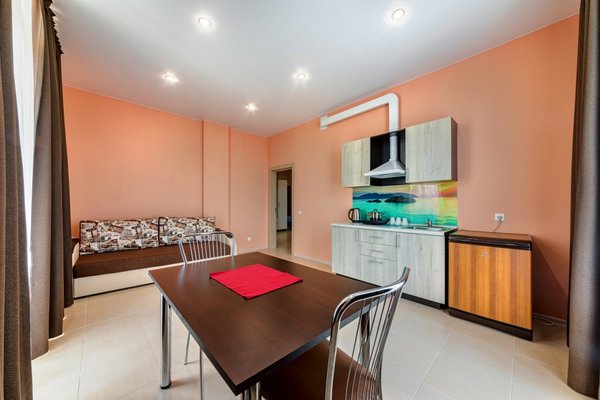 Номерной фонд представлен апартаментами со всей необходимой мебелью и техникой. В каждом номере есть телевизор, холодильник, система кондиционирования и собственные ванные комнаты с гигиеническими принадлежностями. На территории работает беспроводной доступ к сети Wi-Fi.