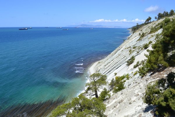 Поездом до ж/д вокзала г. Новороссийск, далее пешком 640 м до остановки «Магистральная улица», далее автобусом №646 в направлении: «Пансионат Джанхот» до остановки «Марьина Роща», пересадка, далее автобусом №3 в направлении: «Океанология» до остановки «Голубая бухта», далее пешком 50 м.