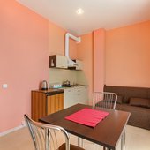 Для самостоятельного приготовления есть мини-кухни в каждом номере, где имеется все необходимое. Неподалеку есть продуктовые магазины, кафе, бары.