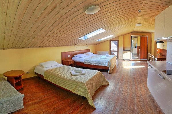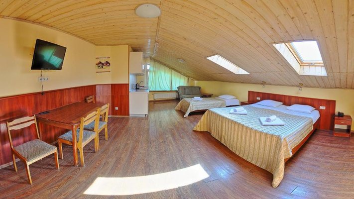 Номерной фонд представлен категориями «стандарт», «семейный», «студио» и «апартаменты». Каждый номер оснащен удобной мебелью и современной техникой.