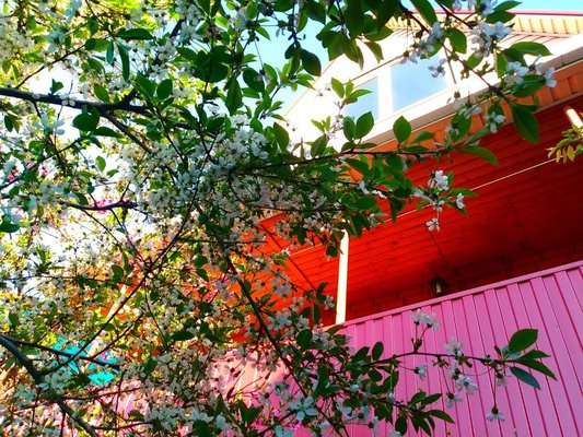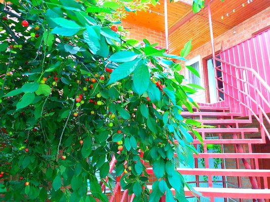 Территория облагорожена зеленью и цветниками. Автомобили можно оставить на парковке.