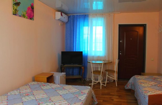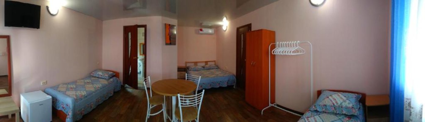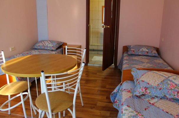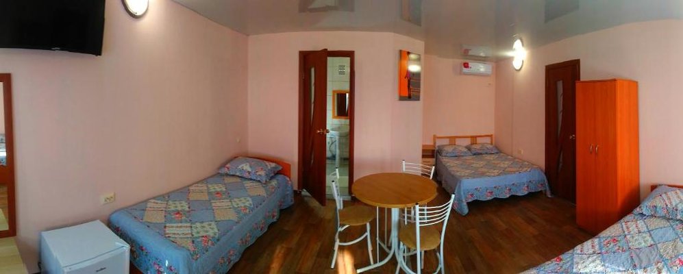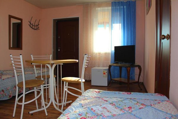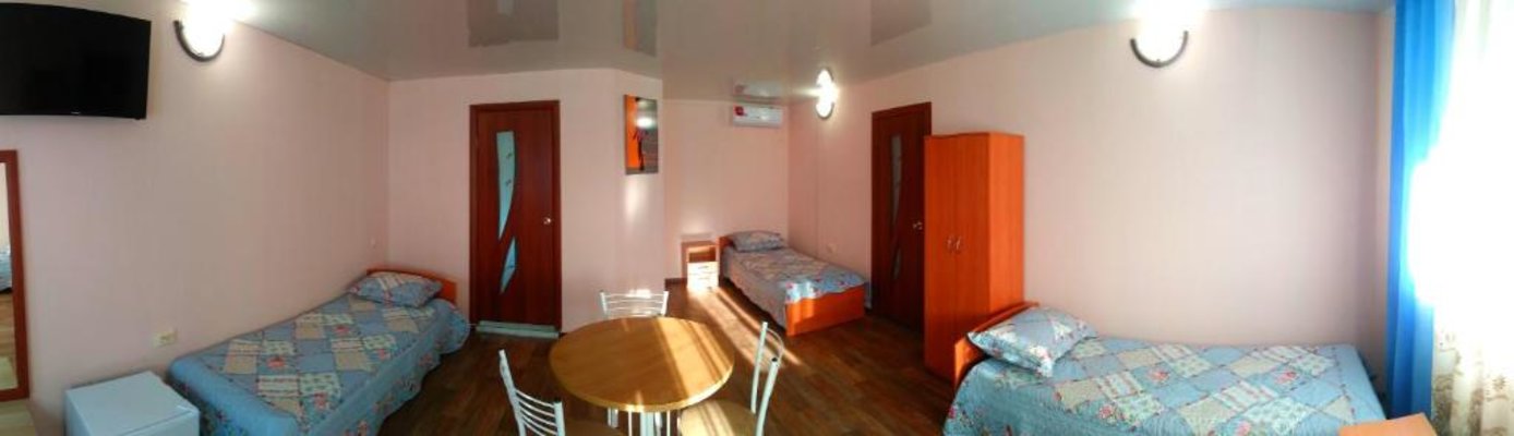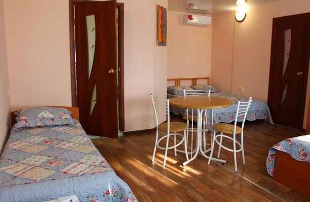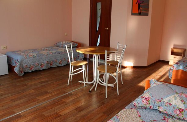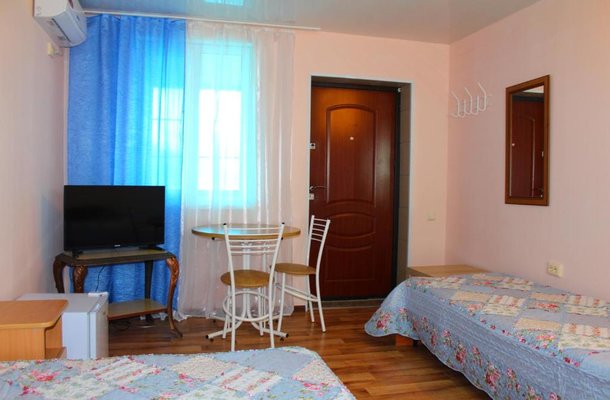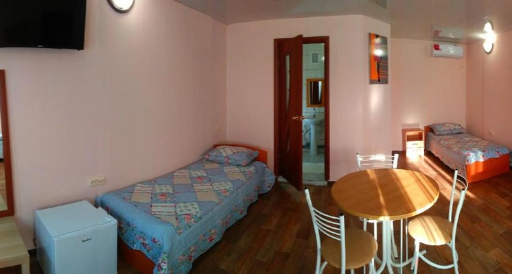 Номерной фонд располагает категориями «Стандарт», «Комфорт» и «Люкс», оформленными в спокойных светлых тонах. В наличии однокомнатные и семейные двухкомнатные номера. Варианты размещения от 1 до 7 человек. Здесь есть всё необходимое для комфортного проживания: удобная меблировка, холодильники и телевизоры, кондиционеры, бесплатный Wi-Fi. Ванные комнаты с санузлами и набором полотенец.