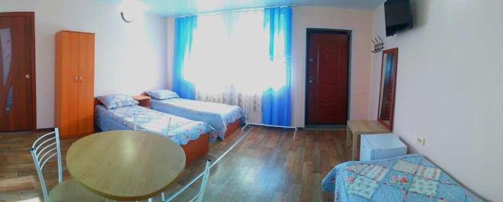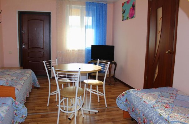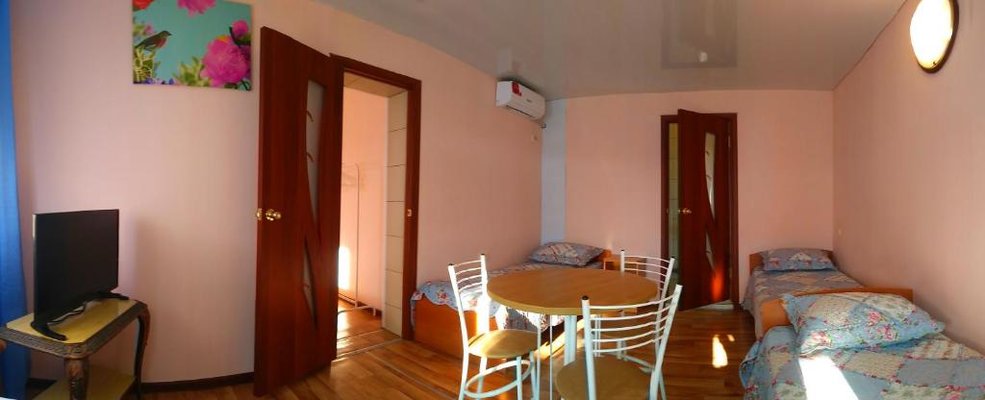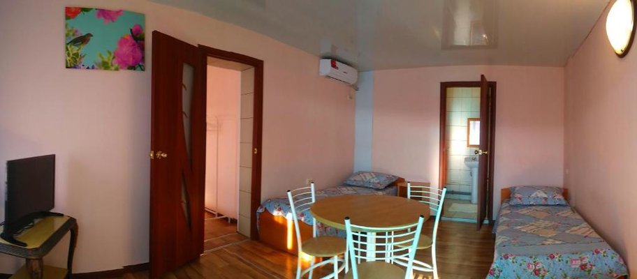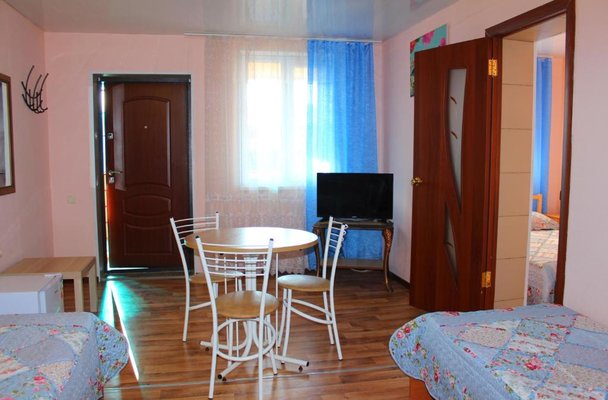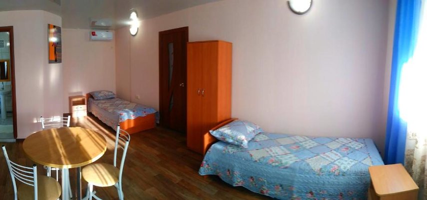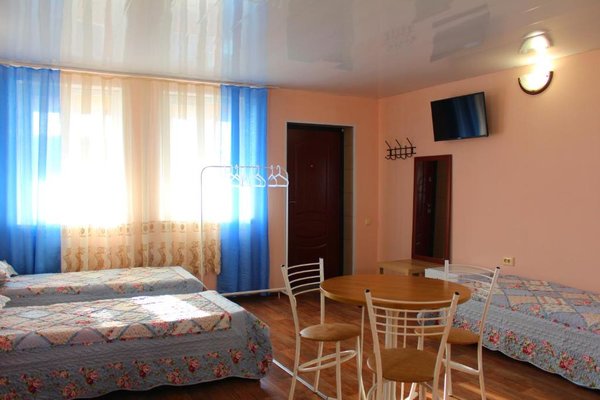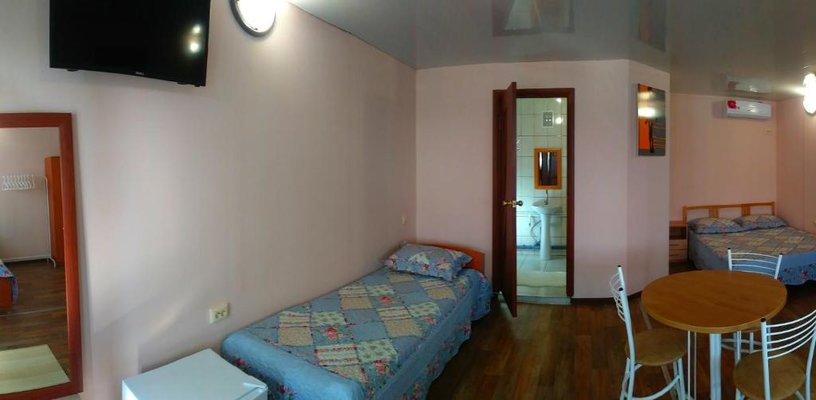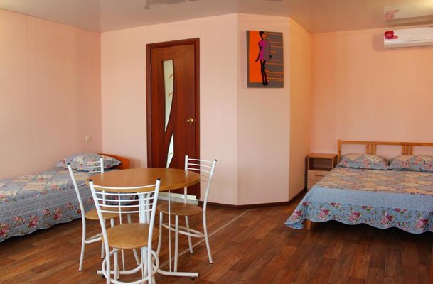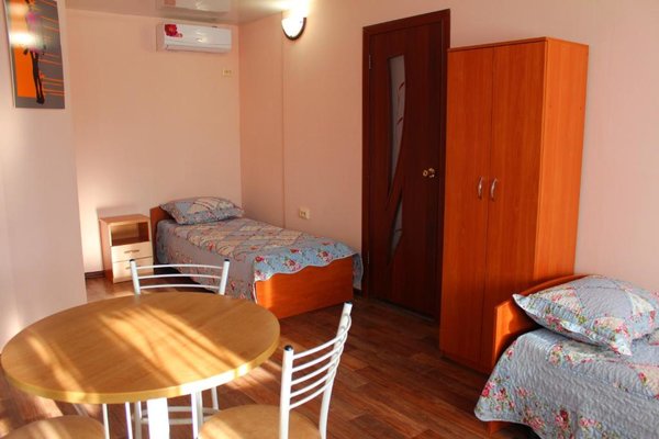 Номерной фонд располагает категориями «Стандарт», «Комфорт» и «Люкс», оформленными в спокойных светлых тонах. В наличии однокомнатные и семейные двухкомнатные номера. Варианты размещения от 1 до 7 человек. Здесь есть всё необходимое для комфортного проживания: удобная меблировка, холодильники и телевизоры, кондиционеры, бесплатный Wi-Fi. Ванные комнаты с санузлами и набором полотенец.