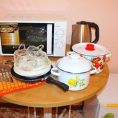Для гостей оборудован современный кухонный блок, где можно побаловать себя домашними блюдами. Есть плиты, микроволновые печи, холодильники, посуда, обеденные зоны со столами и стульями. Рядом, на набережной, находится множество мест общественного питания.