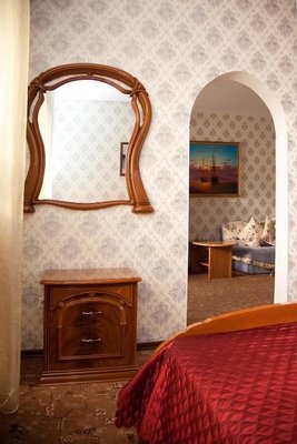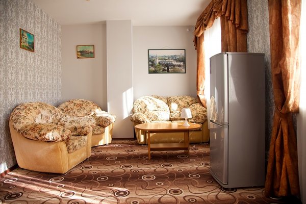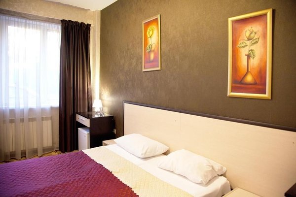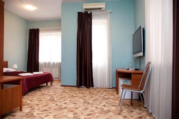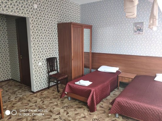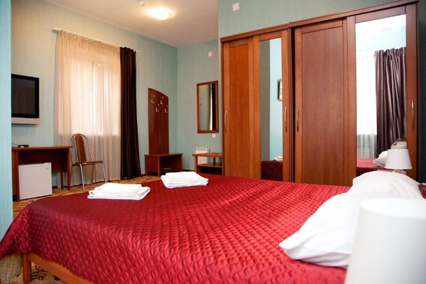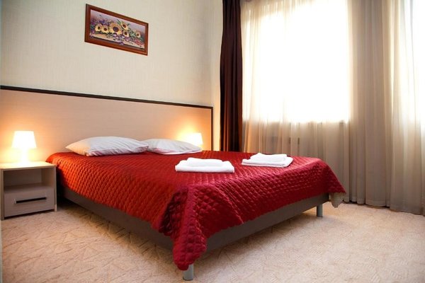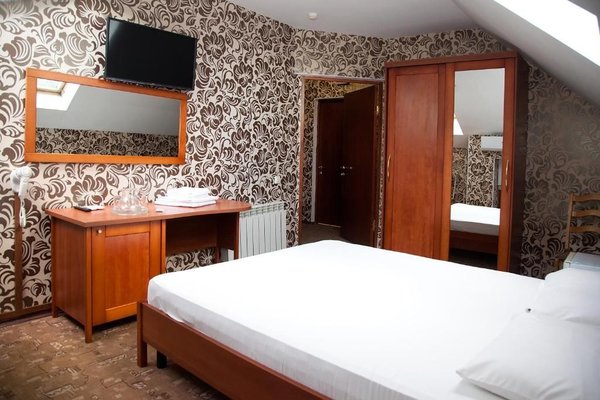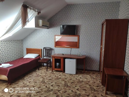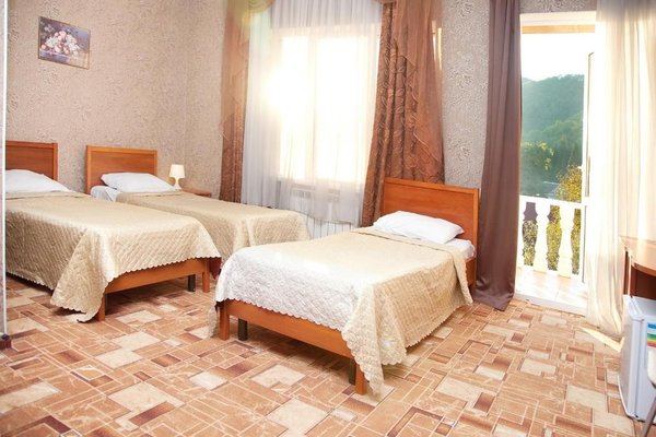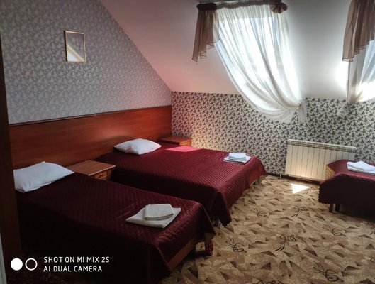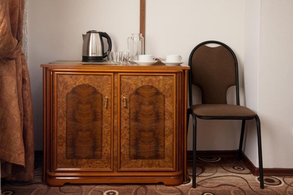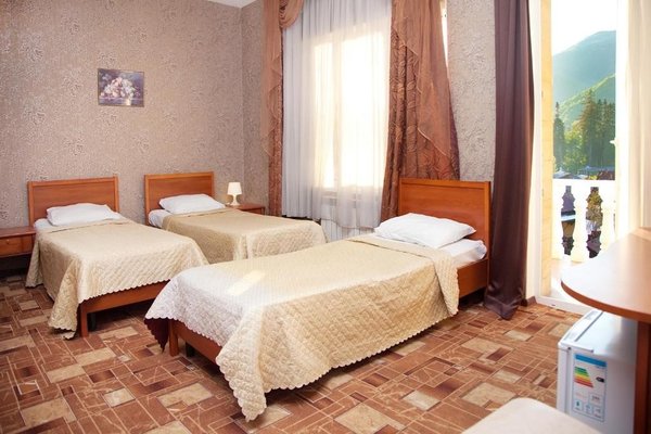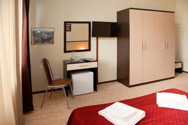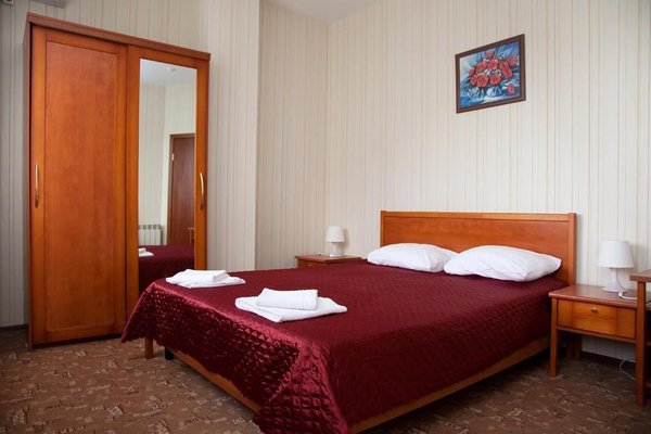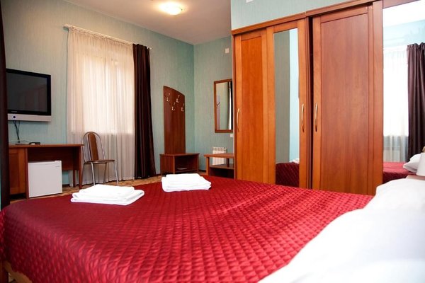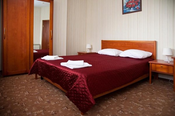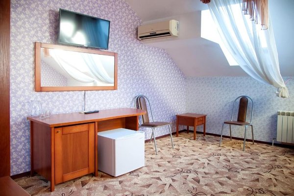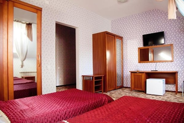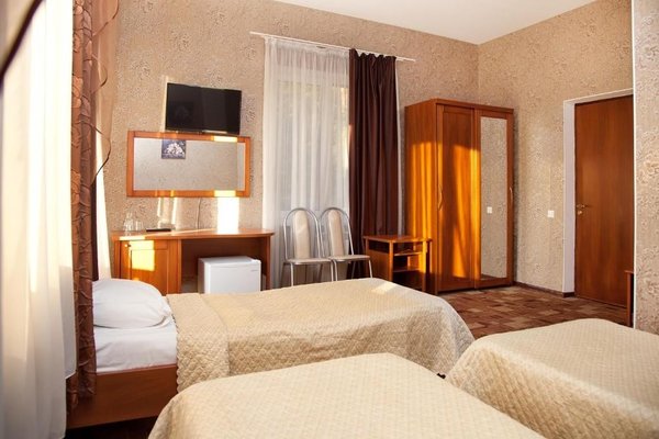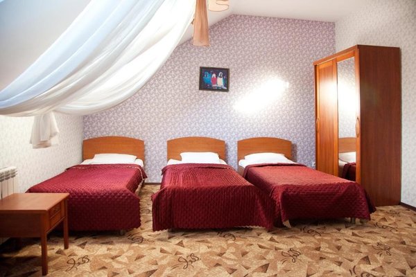 Отель, расположенный на закрытом и охраняемом участке в центральной части поселка, охватывает четыре этажа и общей площадью 1000 кв. м. В его номерном фонде 44 номера, каждый из которых оборудован техникой, включая телевизор, фен и холодильник. Для дополнительного комфорта гостей в ванной предусмотрены банные принадлежности.