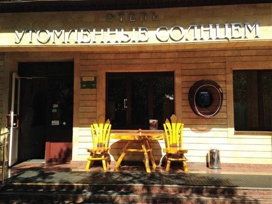 В заведении работает ресторан и лобби-бар с ежедневным режимом работы, где гости могут заказать завтрак, обед или ужин. Также можно питаться в ресторанах, расположенных неподалеку. Имеется парковка для гостей отеля, а высокоскоростной интернет есть в каждой части здания. В "Утомленных солнцем" есть финская сауна, прокат горнолыжного инвентаря и велосипедов в летнее время. Насладиться вечерним досугом можно играя в бильярд или караоке в лобби-баре. Также принимают заказы на экскурсии и конные прогулки в зоне регистрации.