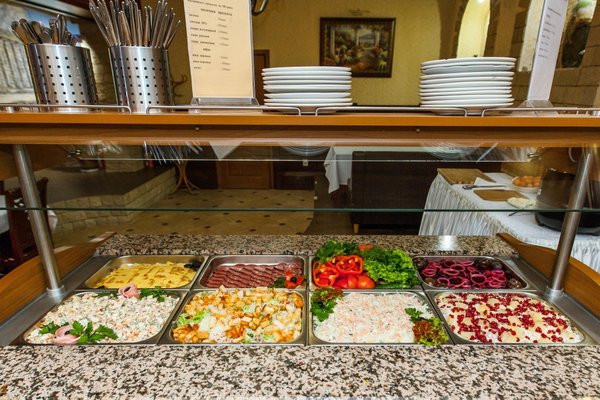 В ресторане отеля «Уют» подают блюда средиземноморской и европейской кухни, а также блюда из морепродуктов. В лобби гости могут заказать чай и сладости, а на террасе полюбоваться видом на розарий.