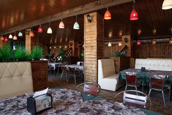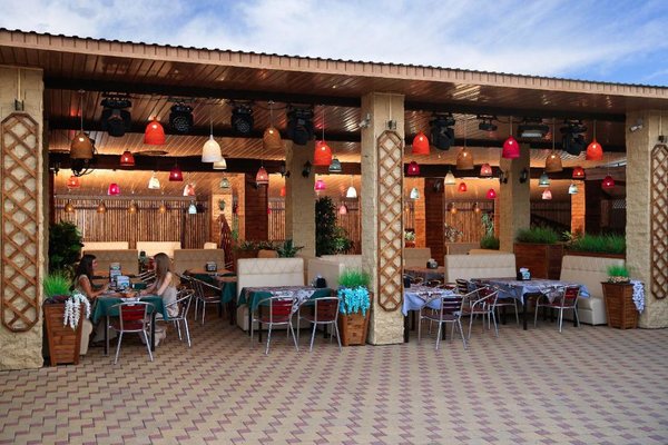 В кафе на территории подают блюда европейской и русской кухни, а проводить весёлые вечера можно на танцполе под открытым небом, в баре с широким выбором напитков и коктейлей, а также развлекательными шоу-программами.