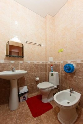Каждый номер оборудован сплит-системой, телевизором, холодильником, феном, тумбой под багаж, а также собственной ванной комнатой.