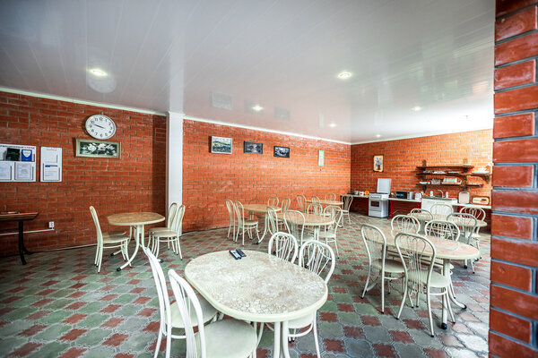 На территории гостиницы расположена столовая. Питание организовано комплексное, 3-х разовое. Стоимость питания не включена в стоимость проживания и оплачивается отдельно. Режим работы столовой с 8 утра до 21:00 вечера.