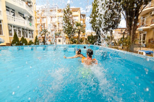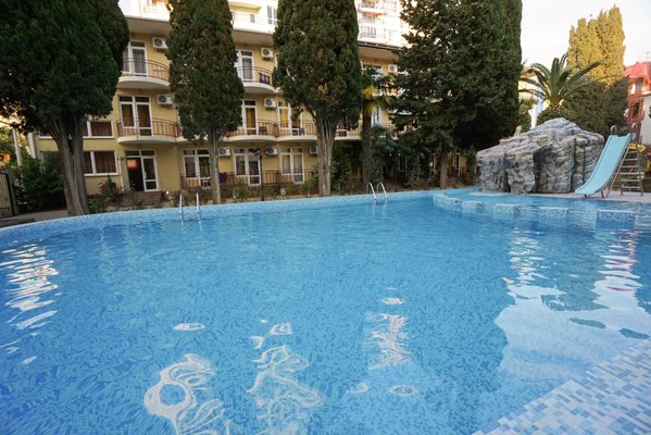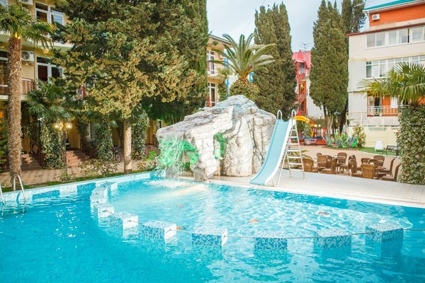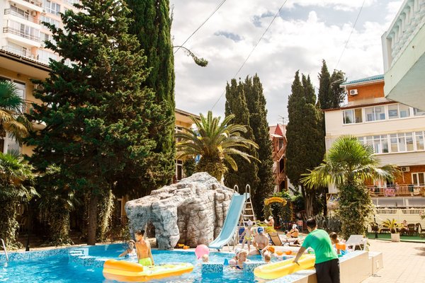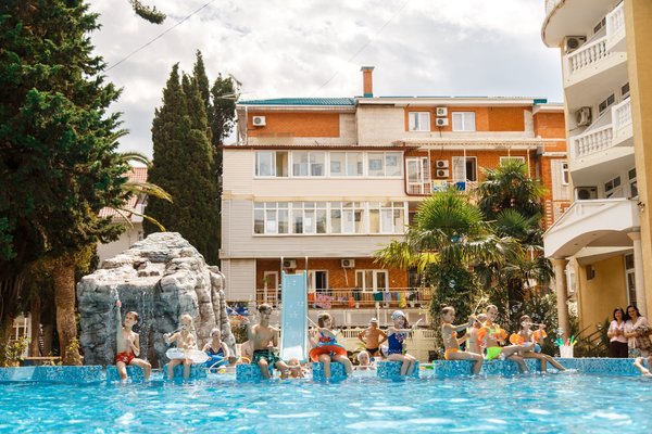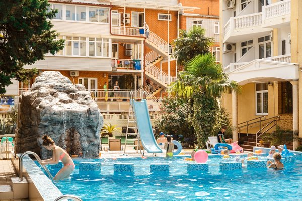 Небольшой атмосферный отель для веселого семейного отдыха Прокат велосипедов, гироскутеров Отличный подогреваемый бассейн с удобными шезлонгами и пляжными полотенцами