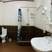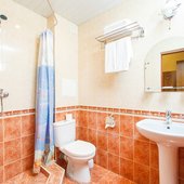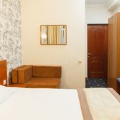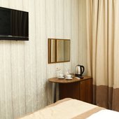 С девушкой прилетели в Адлер 02.06 в 23:20. К полуночи приехали в отель, по предварительной брони нас без проблем заселили в номер стандарт на одну ночь. В отеле нет лифта. Подниматься с чемоданом пришлось пешком...