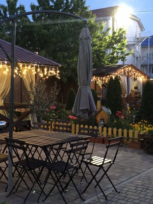 На территории гостевого дома есть все для приятного времяпрепровождения: две стильные беседки (восточная и кавказская), зона барбекю и современная кухня общего пользования. Бесплатный Wi-Fi всегда к вашим услугам.