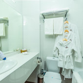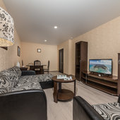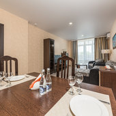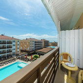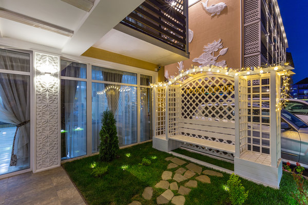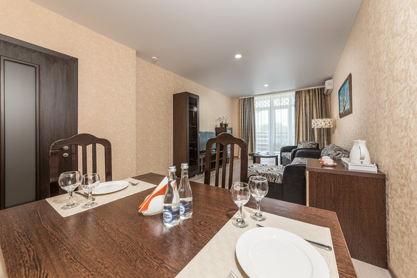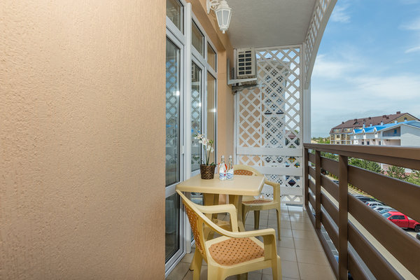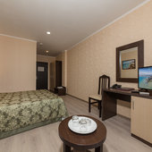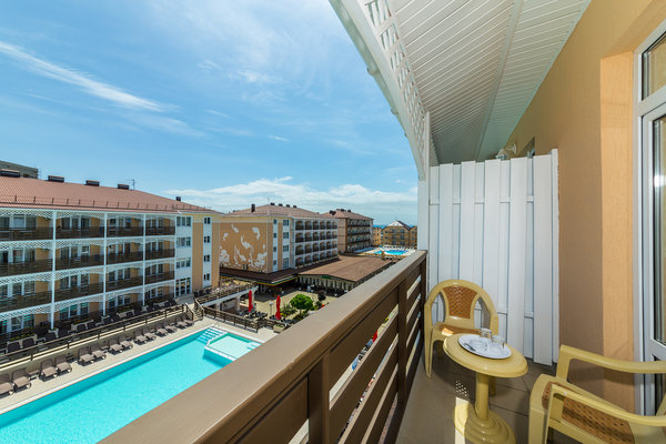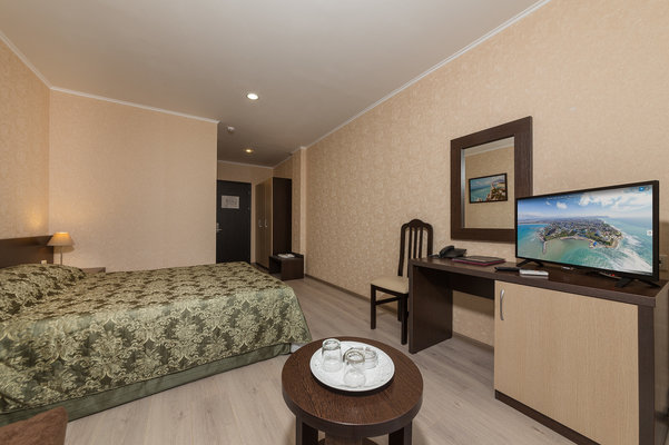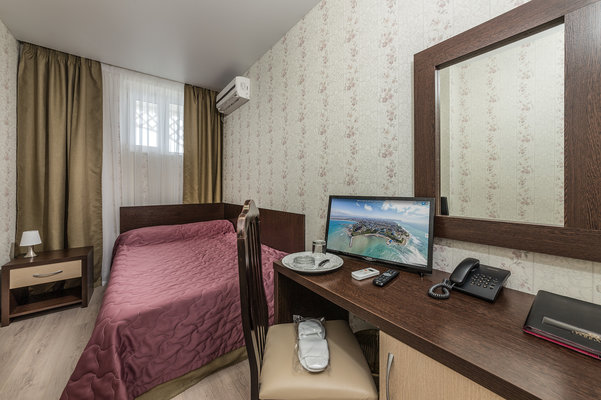 Общая территория отеля составляет 8000 м². Состоит из четырех пятиэтажных зданий, оснащенных лифтами. Номера класса «Апартаменты» (42-44 м²), двухкомнатные номера класса «Люкс» (48-50 м²), Однокомнатные номера класса «Стандарт» (21-22 м² ) и одноместные номера класса «Эконом» (14-16 м²)