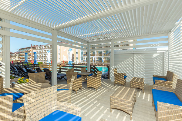Открытый подогреваемый бассейн (18x15 м²) с детским отделением.