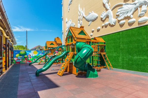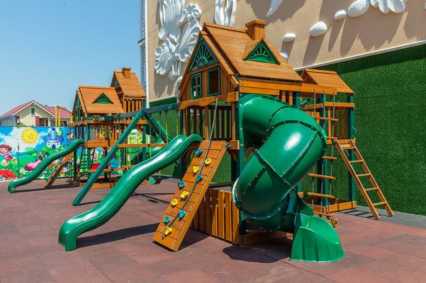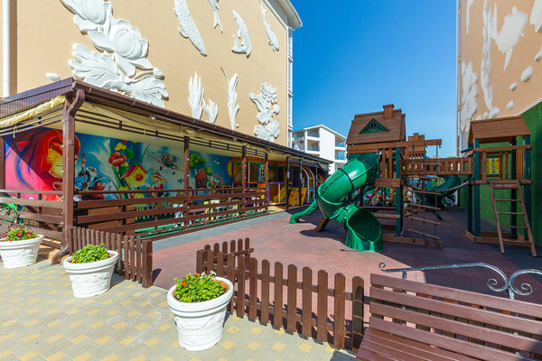 На территории отеля есть детская площадка, оснащенная игровыми комплексами. В одном из корпусов на первом этаже расположена детская комната с воспитателем.