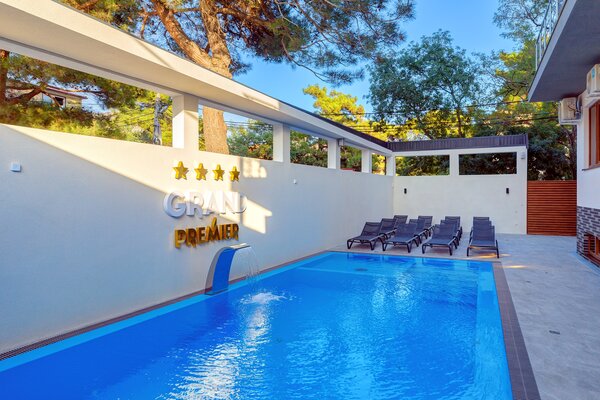 Отель «Гранд Премьер» открыл свои двери в июле 2023 года. Гостям предоставлен подогреваемый бассейн с детской зоной, работающий круглый год, а также две сауны: финская и инфракрасная. На крыше отеля расположено кафе-бар с великолепным панорамным видом на Геленджикскую бухту. В кафе гостям предлагают завтрак в формате «Шведский стол» и блюда русской и европейской кухни. Все номера отеля оборудованы новой мебелью, современной техникой и имеют собственные ванные комнаты.