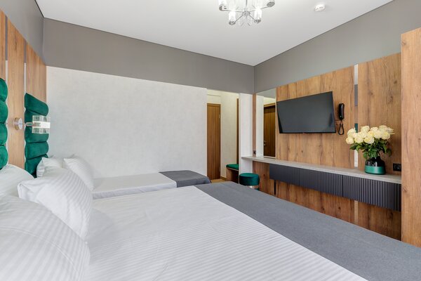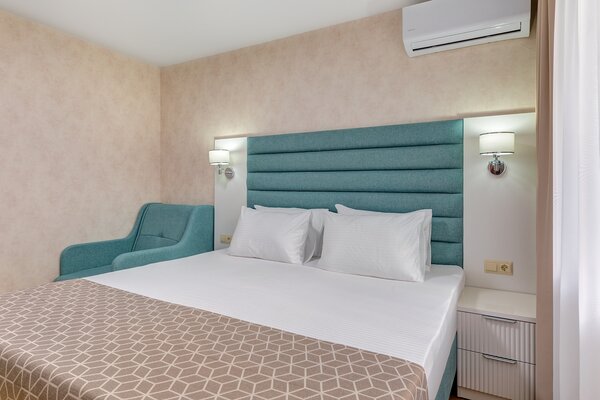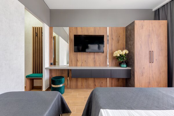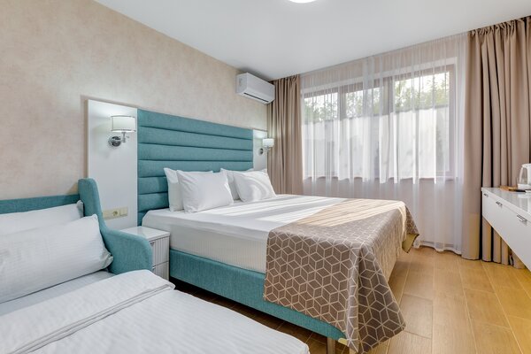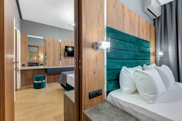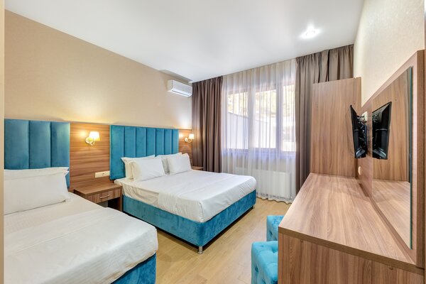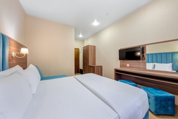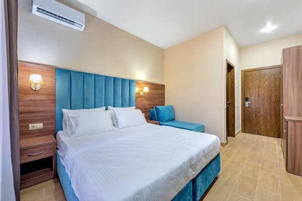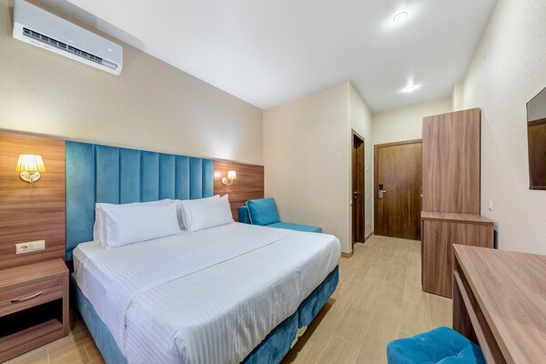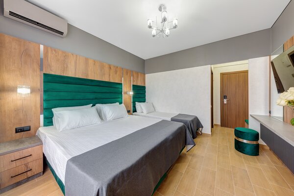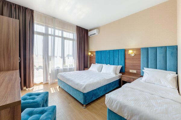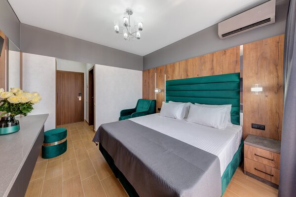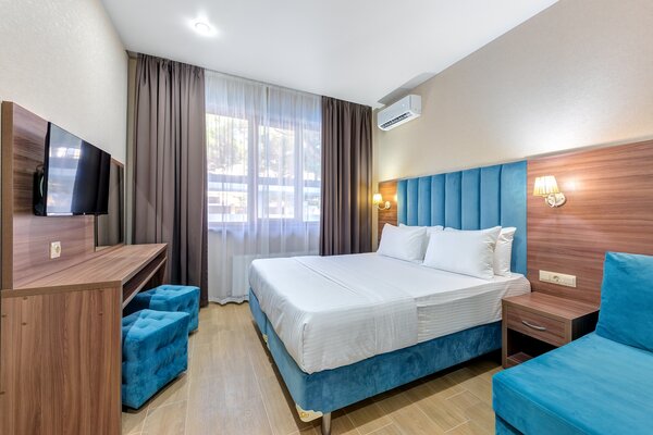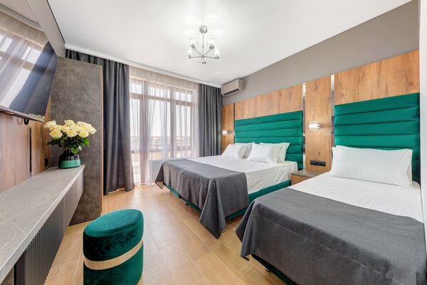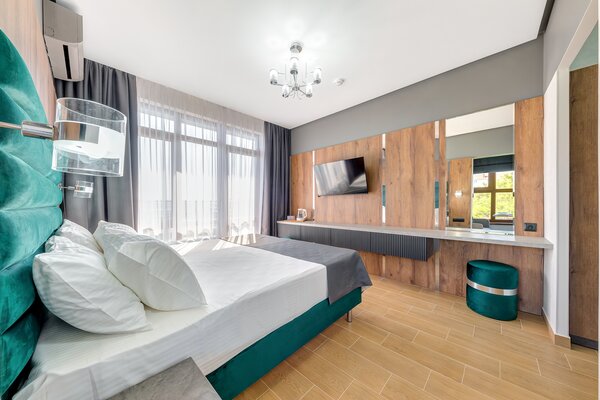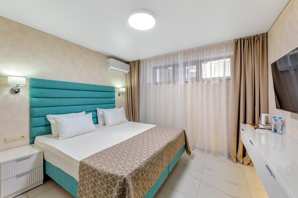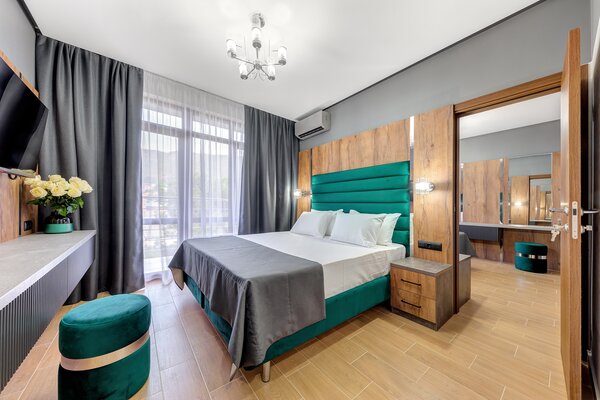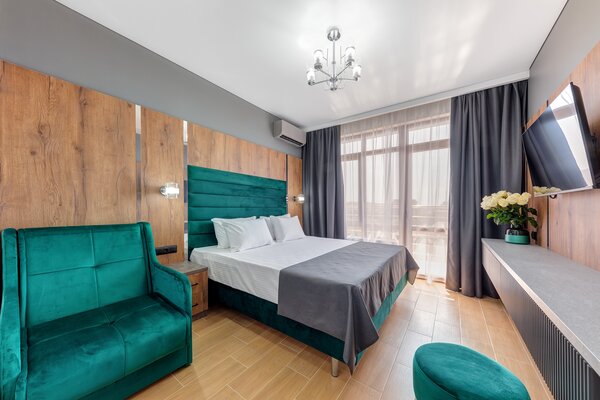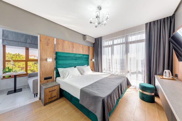Отель «Гранд Премьер» представляет собой европейский стандарт с высоким уровнем сервиса и обслуживания. Великолепные и современные номера с панорамными окнами предлагают захватывающий вид на весь город, море и горы, создавая атмосферу комфорта и роскоши. Рядом с отелем находятся «Сафари парк» и аквапарк «Золотая Бухта», где гости могут насладиться разнообразными видами развлечений и отдыха.