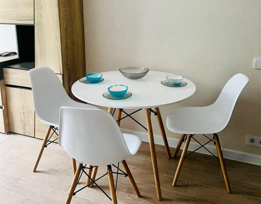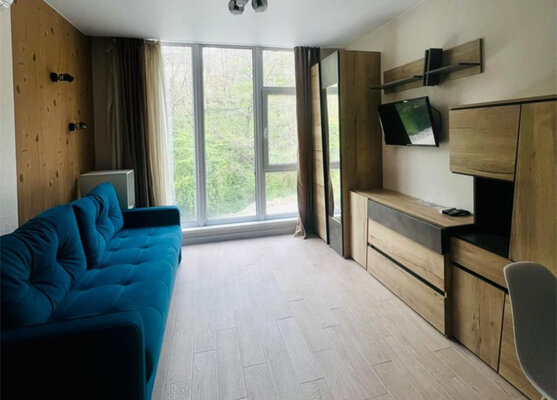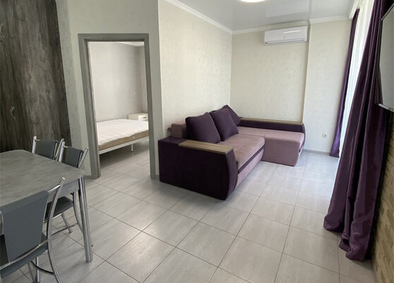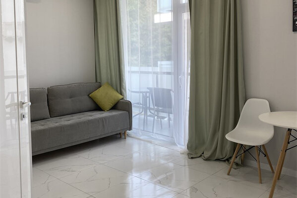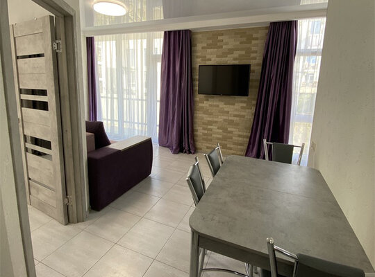 Самолетом до аэропорта г. Сочи, далее на рейсовом автобусе №105 до остановки «Санаторий Известия», далее на рейсовом автобусе №555 до остановки «ул. Титова», дале 250 м до остановки «Молочный комбинат», далее на рейсовом автобусе №2 до остановки «ул. Докучаева», далее 860 до апартаментов.