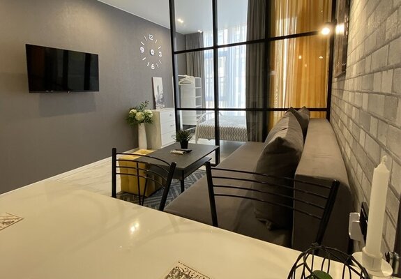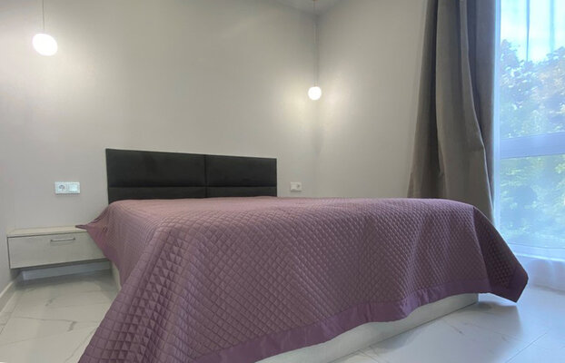 Поездом до ж/д вокзала г. Сочи, дале 174 м до остановки «Вокзал Сочи», далее на рейсовом автобусе №2 до остановки «ул. Докучаева», далее 860 до апартаментов.