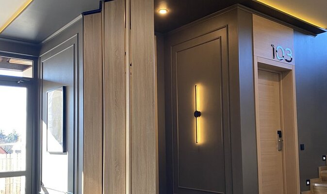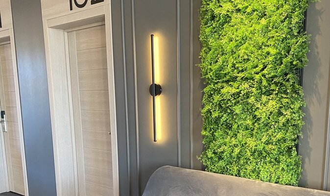 Трехэтажный корпус отеля с закрытым внутренним двориком расположен на тихой улице, утопающей в зелени. Внутри вас ждут стильные современные интерьеры в приятных спокойных оттенках. 16 просторных номеров с удобствами, оборудованных сплит-системами, телевизорами, электрочайниками, фенами и мини-холодильниками. Столовая отеля предлагает вкусные блюда, а для любителей шашлыков организована уютная барбекю-зона. Отдохнуть и насладиться солнцем можно у небольшого открытого бассейна с подогревом, где вас ждут удобные шезлонги.