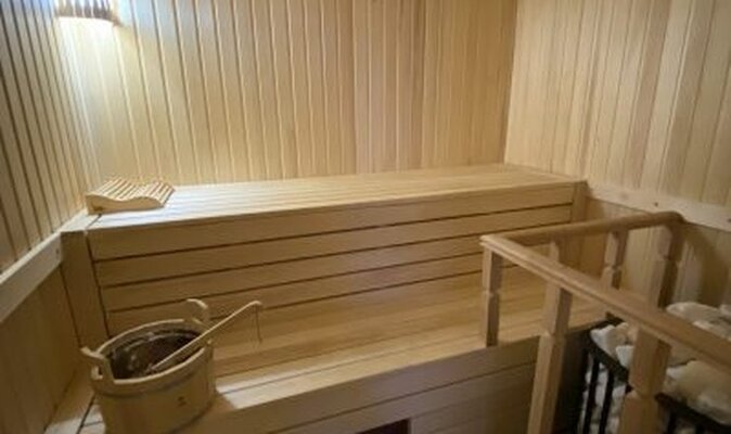 Забронировать баню можно от 2 часов. Рассчитана на 6-8 человек. Просторный предбанник со столом, пуфиками, диваном. Для гостей предусмотрена вода, чаи, посуда, полотенца — все необходимое для Вашего отдыха.