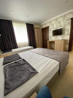 Номерной фонд состоит из просторных и светлых комнат, которые оснащены всем необходимым для продолжительного размещения. В каждой комнате есть удобные кровати, телевизор с кабельными каналами, холодильник и кондиционер. В ванной можно воспользоваться предоставленными полотенцами.