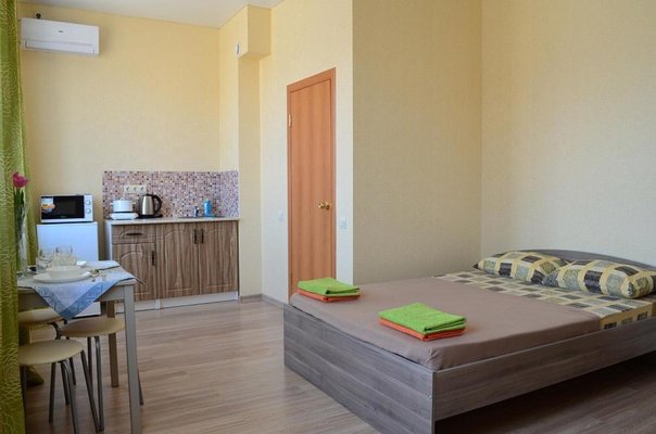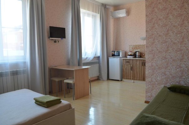 Все номера с мини-кухней оснащены телевизором с плоским экраном. В числе удобств номеров собственная ванная комната. До центра города — 10 км. Расстояние до железнодорожного вокзала Краснодара составляет 16 км, а до международного аэропорта Краснодар — 25 км.