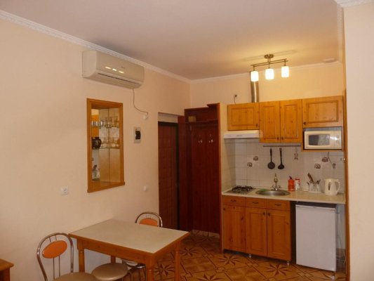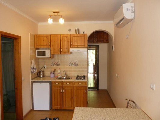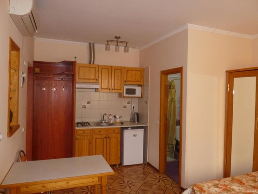 Каждый номер оснащен холодильником, СВЧ печью, чайником. Так же постояльцам предлагается воспользоваться принадлежностями для барбекю.
