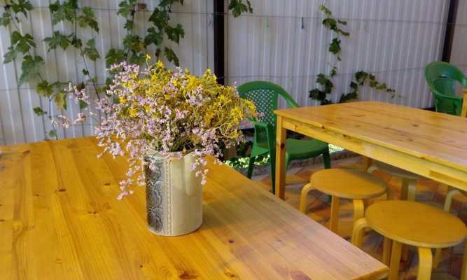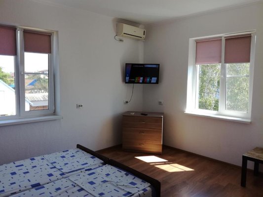 Тихое местечко на Азовском море. Пляж немноголюдный в 5 минутах от территории. Нам достался номер с отдельным входом и со столом на улице, где мы могли попить кофе. С соседнего участка наблюдали гуляющих козочек. Все скромно, без пафоса, но уютно и чисто.