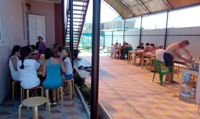 Жили здесь в начале лета целых 3 недели. Стоимость проживая доступная Питание трехразовое, готовят свои повара. Нет вечерних городских шумов. До моря метров 300. Недалеко есть магазин продуктов. Пляж с мелким ракушечным песком, море неглубокое, теплое. Через хозяев можно заказывать такси, это выгодно по цене. Сюда в основном семьями приезжают, детей хватает для общения.