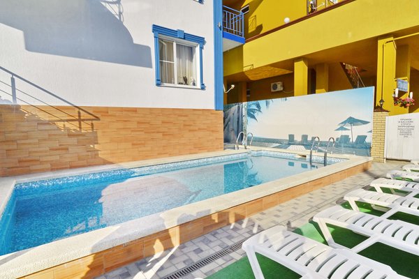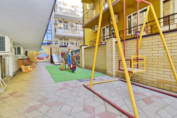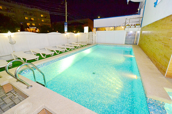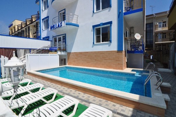 На благоустроенной территории гостевого дома «Хеллас» имеются: детская площадка, зона барбекю с мангалом, автопарковка, а также открытый бассейн с подогревом. Питание гостей организуется в собственной столовой или в летнем-кафе с вкусными и недорогими блюдами.