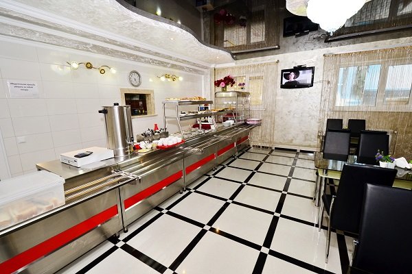 Столовая — в корпусе, европейская и кавказская, работает: 8:00-21:00