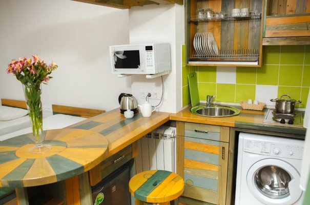 На общей кухне гости смогут самостоятельно приготовить блюда и напитки. Также неподалеку от отеля можно найти заведения общественного питания с широким ассортиментом блюд и напитков, которые придутся по вкусу любому гурману.
