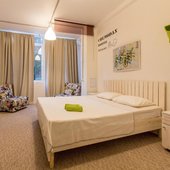 Открытие состоялось в 2015 году, интерьер отеля совсем новый, свежий и современный. Номерной фонд представлен уютными просторными номерами с собственными удобствами, поэтому отдых здесь будет очень спокойным и комфортным. Все комнаты выполнены в светлых тонах и отлично меблированы.