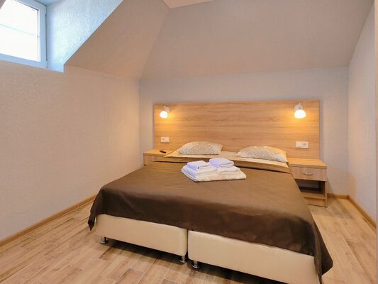 Уютные номера, оформленные в светлых тонах, оснащены всем необходимым для комфортного проживания. Выберите номер, идеально подходящий именно вам. На территории отеля работает столовая (питание — платно). Платная парковка расположена в 200 метрах.