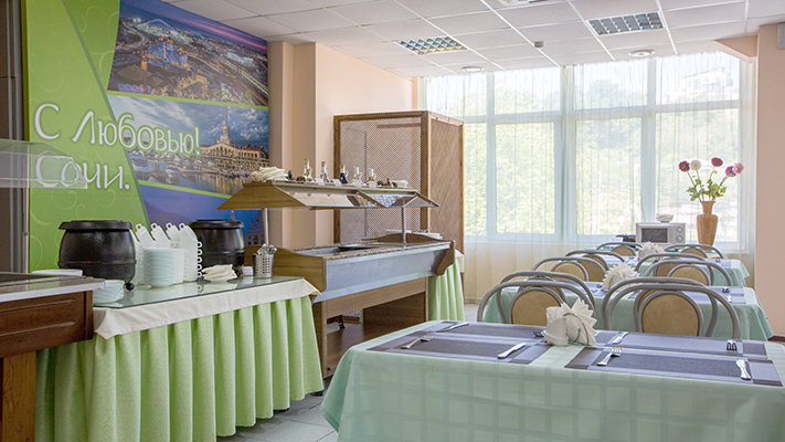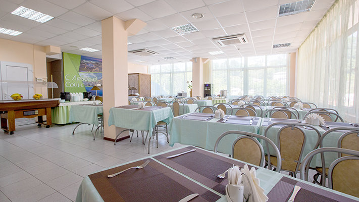 Основной ресторан — 2 корпус, европейская кухня. Завтрак 07.00 - 10.00, обед 13.00 - 15.00, ужин 18.00 - 20.00