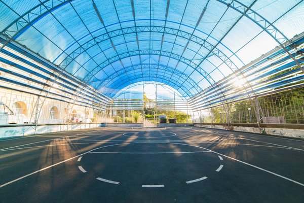 бесплатная — перед въездом на территорию комплекса, при наличии свободных мест