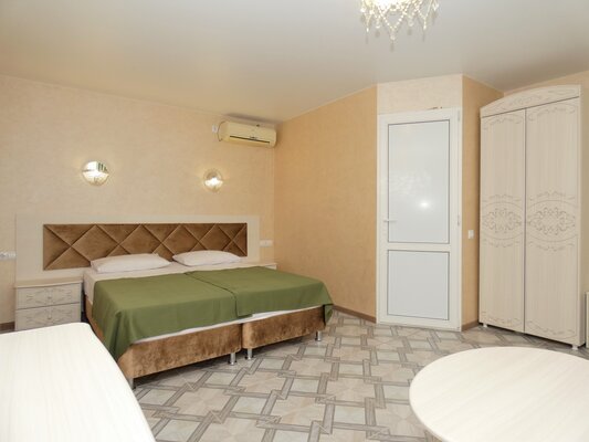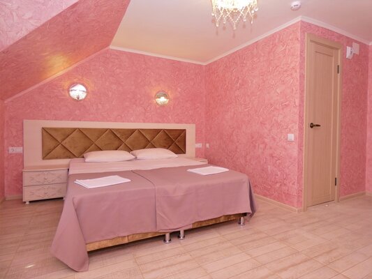 Четырехэтажное здание предлагает размещение в номерах различной вместимости, включая двухкомнатные варианты и апартаменты с кухней. Каждый номер оснащен кондиционером, телевизором, холодильником, санузлом с душем и доступом к Wi-Fi.