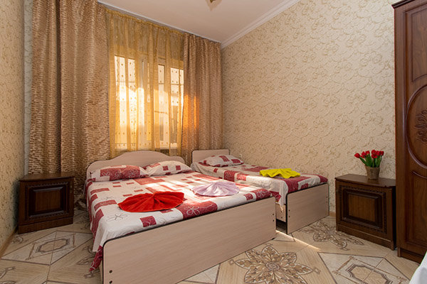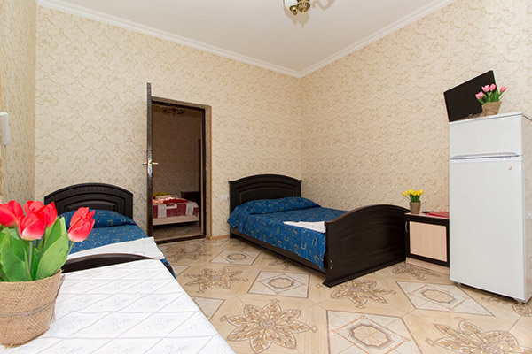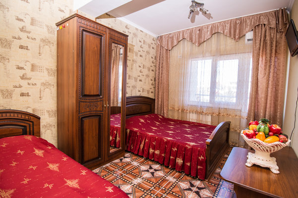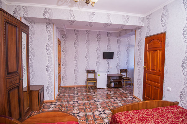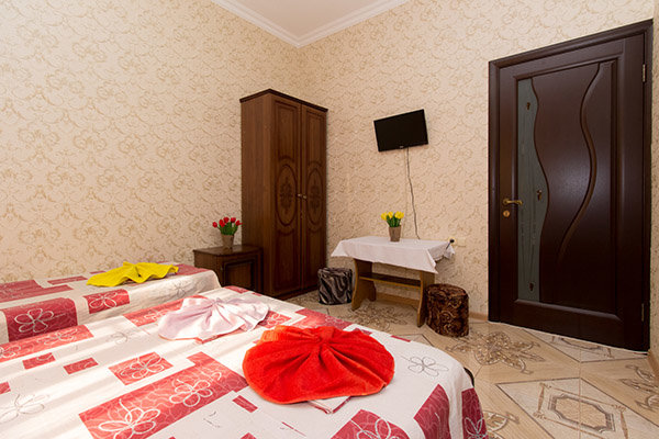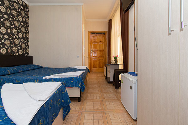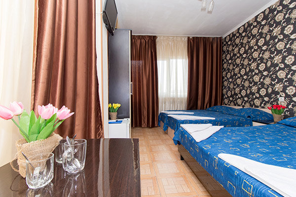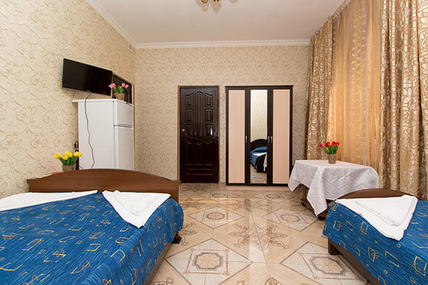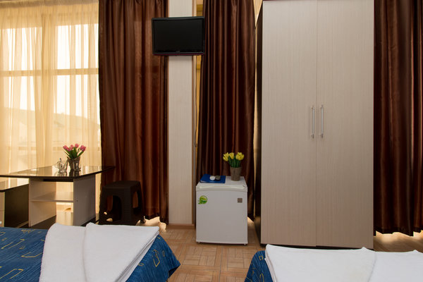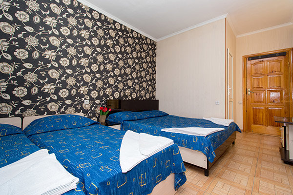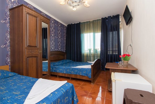 Близко пляж, качественная уборка номера и смена белья, есть холодильник, кондиционер, балкон.