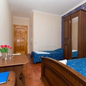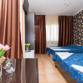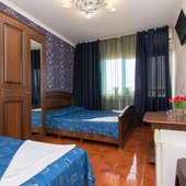 Отдыхали с мужем 10 дней в этой гостинице в октябре 2017 года. Номер нам достался на третьем этаже с видом на жд пути и море. В номере была нормальная мебель : огромная двухспальная кровать, односпальная...