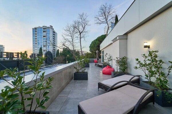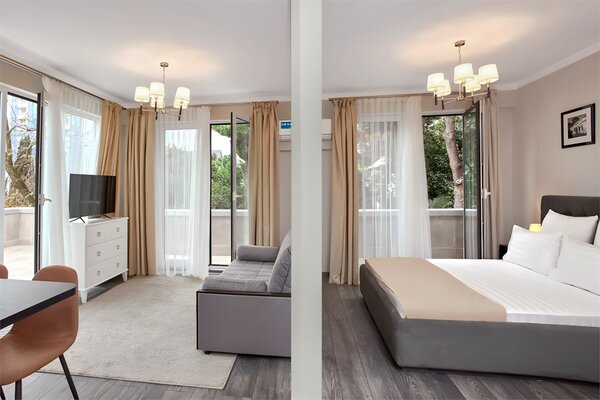 Самолетом до аэропорта Адлер (г. Сочи), далее на автобусе №105а, 105с в направлении: «ТРЦ Моремолл» до остановки «Цирк», далее пройти 82 м до отеля.