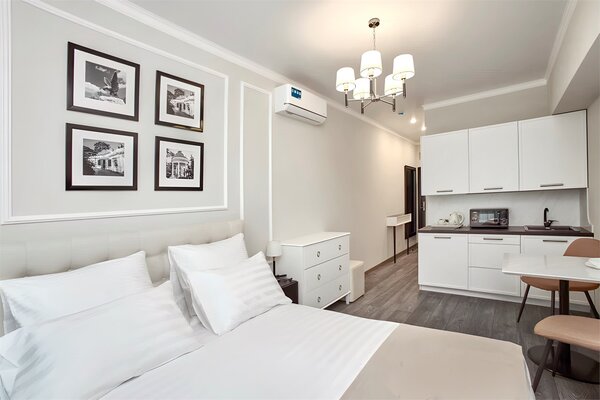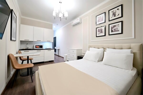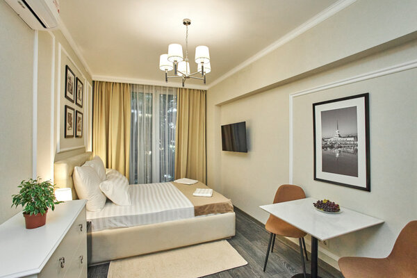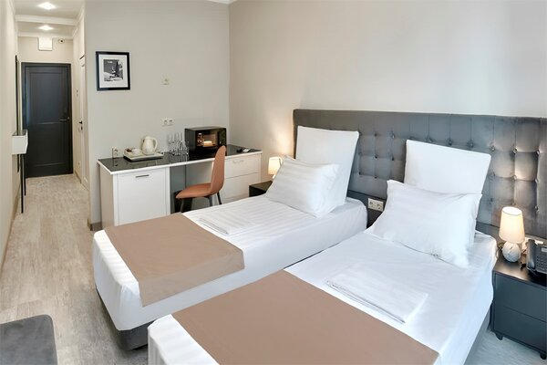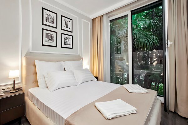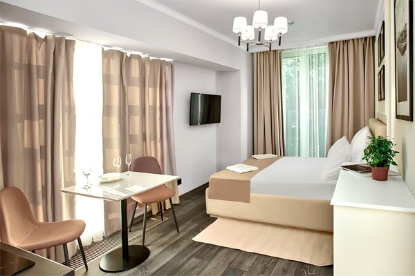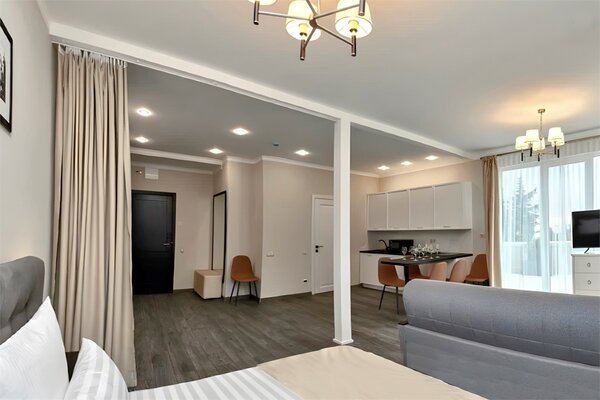 К услугам гостей широкий выбор номеров, от стандартных до люксов, оформленных в современном стиле и оснащенных всем необходимым для комфортного проживания: удобные кровати, телевизоры, кондиционеры, мини-холодильники и бесплатный Wi-Fi.
