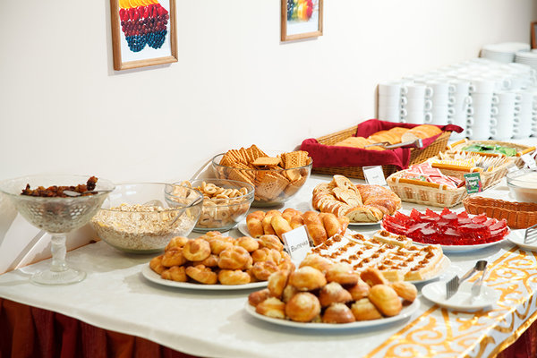 Организация питания в центре — это полноценные разнообразные завтраки и обеды с ужинами в просторном зале основного ресторана «Агат» на 4 этаже корпуса. На местном рынке или в магазинах можно приобрести фрукты, овощи и местные деликатесы самостоятельно.