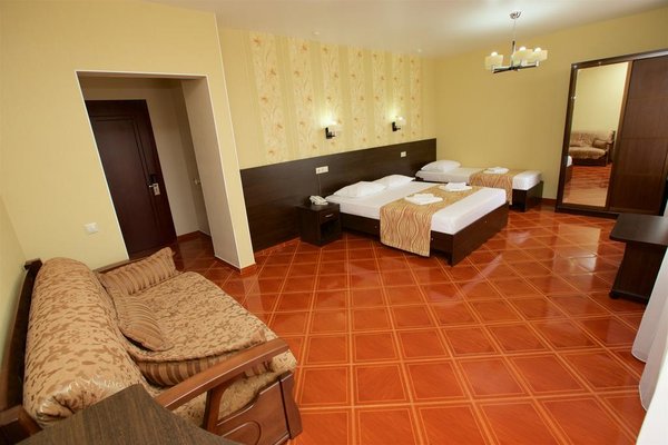 Постоянно повышая уровень сервиса и набор дополнительных услуг, отель становится привлекательнее с каждым годом. На территории есть два бассейна с подогреваемой водой, собственная парковка под видеонаблюдением, детская комната, детская площадка, зона отдыха с теневыми навесами, летний бар. За дополнительную плату работает банный комплекс.