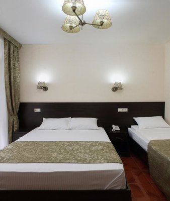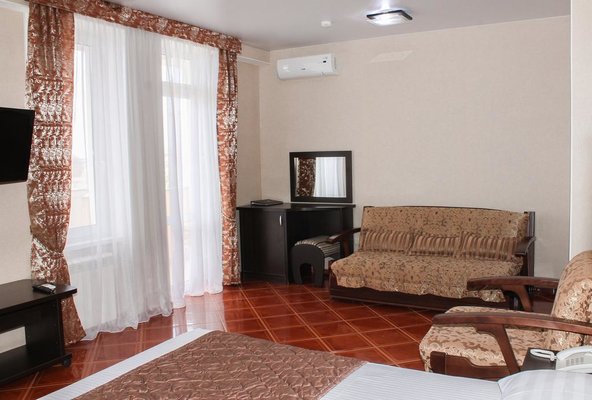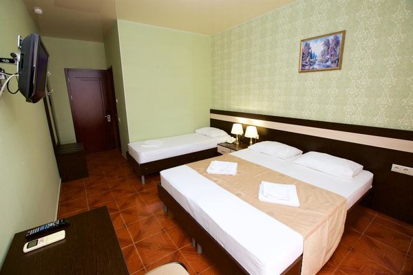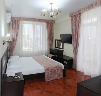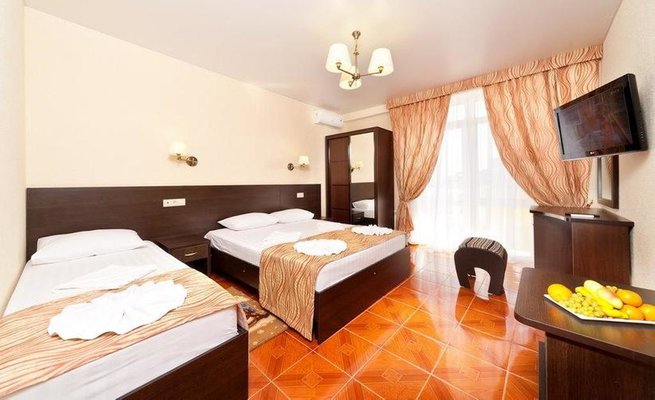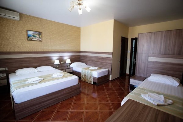 Номерной фонд отеля составляет 87 уютных номера различных категорий, оснащенных всем необходимым. Весь день гости отеля имеют возможность отдыхать на собственном пляже, купаясь в лучах жгучего солнца и волнах ласкового Черного моря, а в отеле их ждет кафе с разнообразным и вкусным питанием, развлечения на любой вкус и отдых на белоснежной постели. Наш персонал всегда готов помочь в любой ситуации и сделать отдых максимально незабываемым. Мы всегда рады, когда наши туристы возвращаются к нам вновь и вновь.