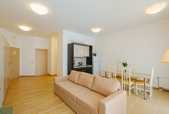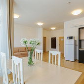 Разрешается проживание с домашними животными, весом до 6 кг. по предварительному согласованию с отелем.